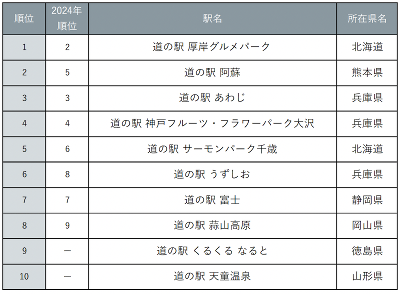 『じゃらん』もう一度利用したい道の駅ランキング2025