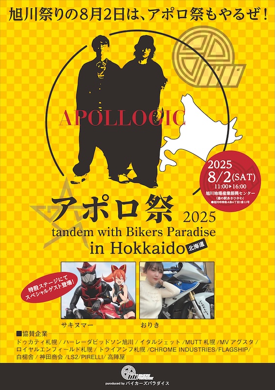 株式会社バイカーズパラダイスは、YouTubeフォロワー20万人越えの有名モトブロガー「APOLLOGIC(アポロジック)」が行う大規模ファンイベント「アポロ祭2025 in北海道」を総合プロデュース。