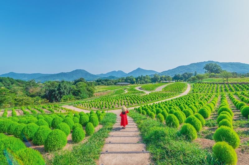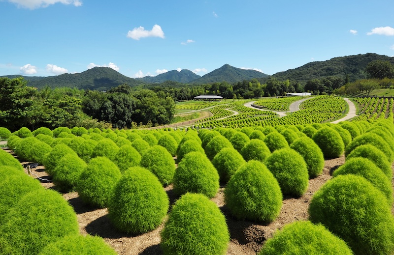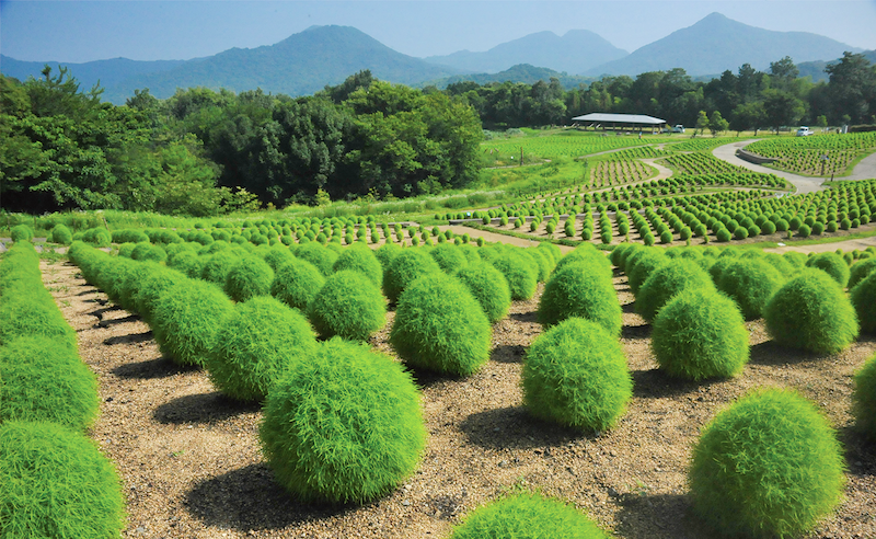 まんのう公園では夏~秋にかけて、ふわふわもこもことした姿が可愛らしい「コキア」を鑑賞いただけます。