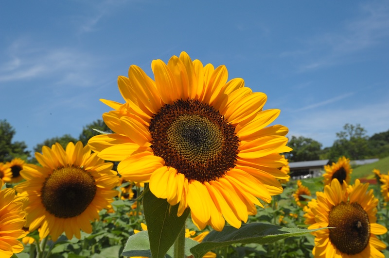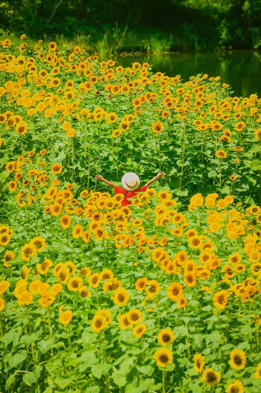 青竜の谷を黄金に染めるひまわり畑で、ひまわりに囲まれながら写真を撮ろう!
