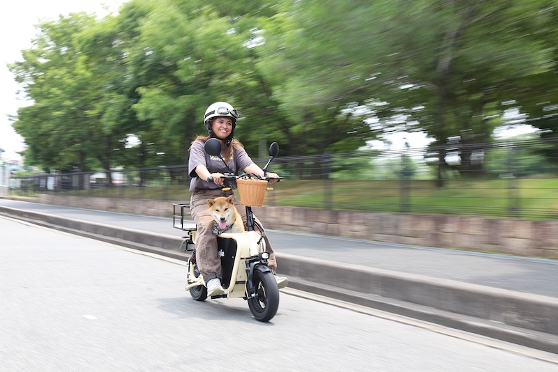 車を出すまでもない、「ちょっとそこまで」を実現する電動バイクDoggie(ドギー)があれば、あなたと愛犬の日常はもっと楽しくなるはず!天気の良い昼下がり。愛犬を乗せて気軽に旅に出よう。