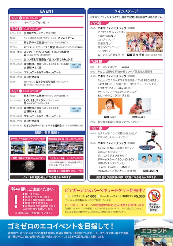 ライブやダンス、花火、阿波おどり、グルメ屋台など、誰でも楽しめるイベントが盛りだくさんです。