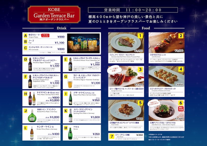 営業時間 : 神戸ガーデンテラスバー 11:00~20:00