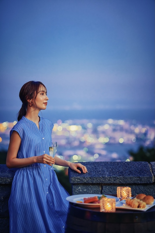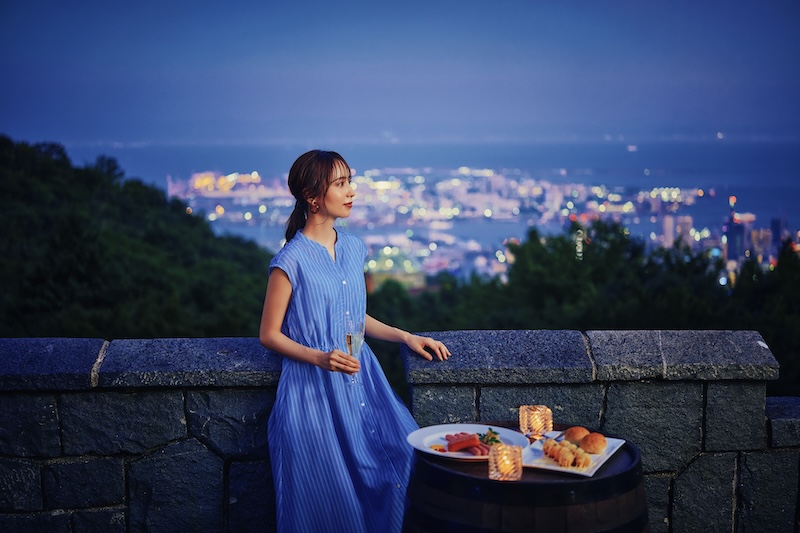 煌めく神戸の夜景を眺める最高のロケーションを活かし、山頂の広場をイルミネーションで幻想的空間に演出します。夏の神戸布引ハーブ園は「きっと忘れない夏」をテーマに毎日ナイター営業を実施しており、パラソルテーブルやバーカウンターなど都会からすぐの自然の中でゆっくりと滞在できる場所を提供します。