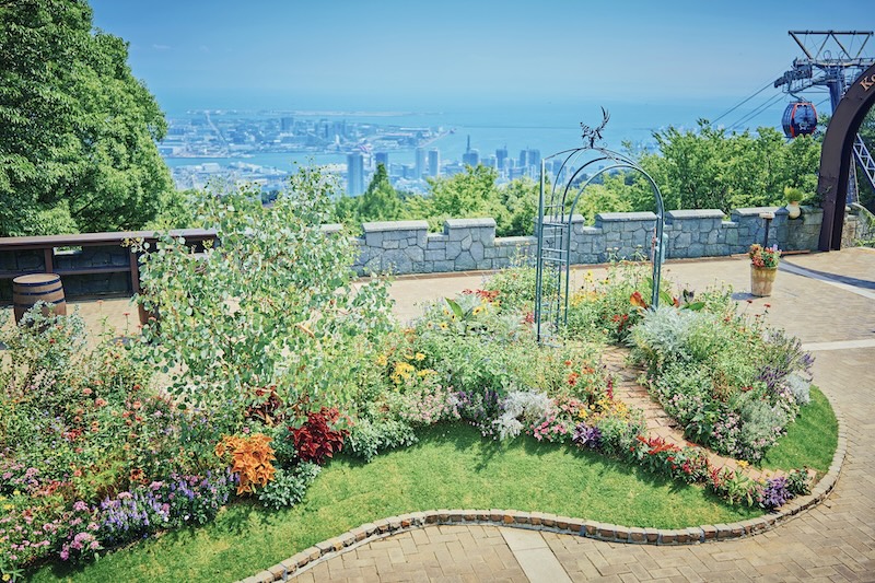 神戸の街を見下ろす「バーカウンター」、幻想的な「展望プラザ」。好きな場所で、好きな時間に思い思いに過ごせるのが神戸布引ハーブ園です