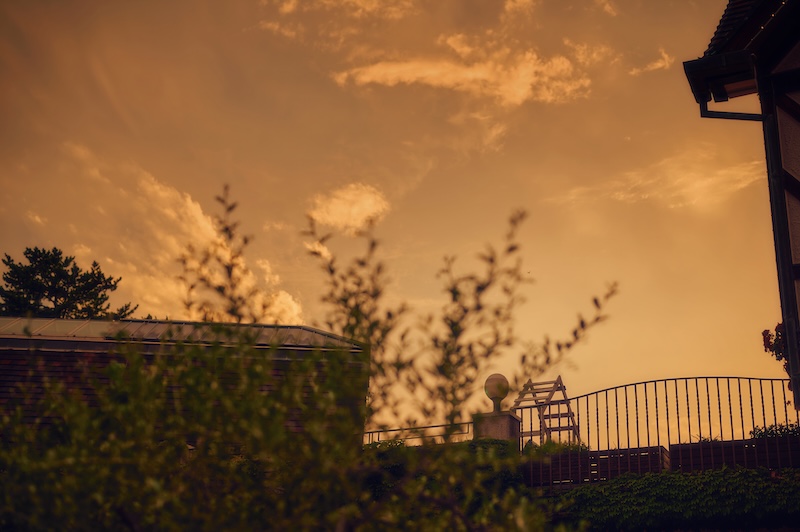 夕焼けから夜景へのドラマティックなロケーションを眺めながら