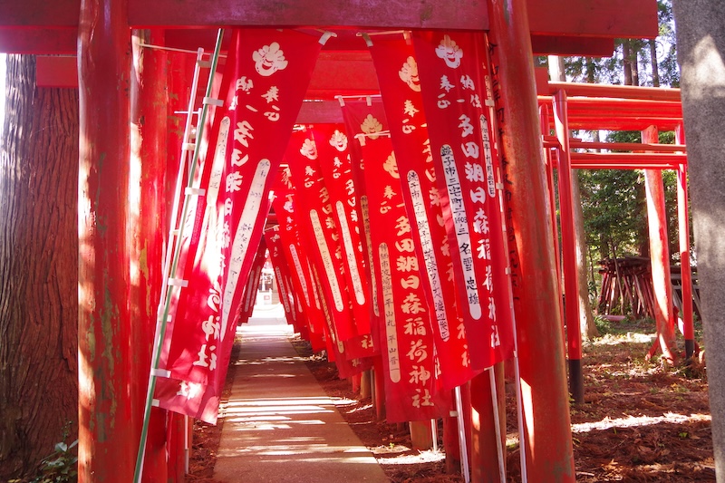 都内から東関東自動車道を走り、佐原香取ICで下りてまずはIC近くの香取神宮に寄る。朱色の総門が有名だが、香取神宮の要石は鹿島神宮の要石と対になっていて地の大ナマズを抑えている。そして香取神宮から東に2㎞ほど走ったところにある多田朝日森稲荷神社に。