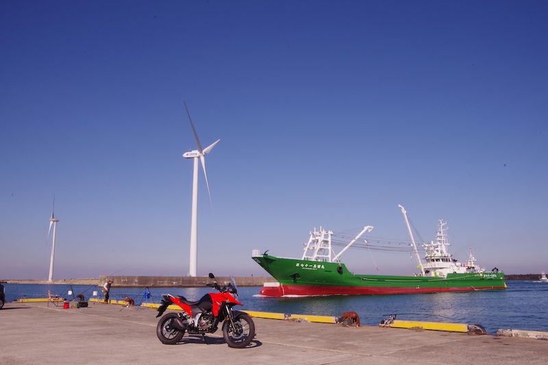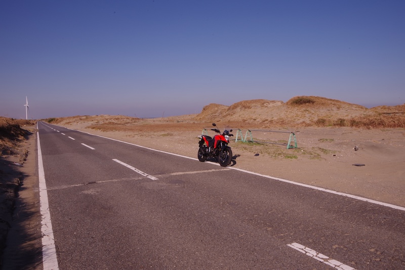 利根川河口にある波崎新港は港内に大型風車があり、バイクを絡めて写真を撮れる。そしてそのまま鹿島灘沿いを走るシーサイド道路に入る。