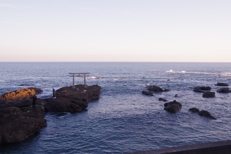 そして海門橋を渡り、海産物が売られている那珂湊おさかな市場を過ぎた港の先からひたち海浜公園までの約8㎞の海沿いを走る区間は、海の景色や磯の風景を楽しみながら走れる絶景爽快路で、ところどころに無料で駐車出来る場所(傾斜に注意)があり、磯に下りて眼前に海原を見ることが出来る。少し先に進むと酒列磯前神社がある。境内には海の見える鳥居や樹叢がトンネルのように樹林が茂っている雰囲気のある寺社なので、是非とも立ち寄りたい。