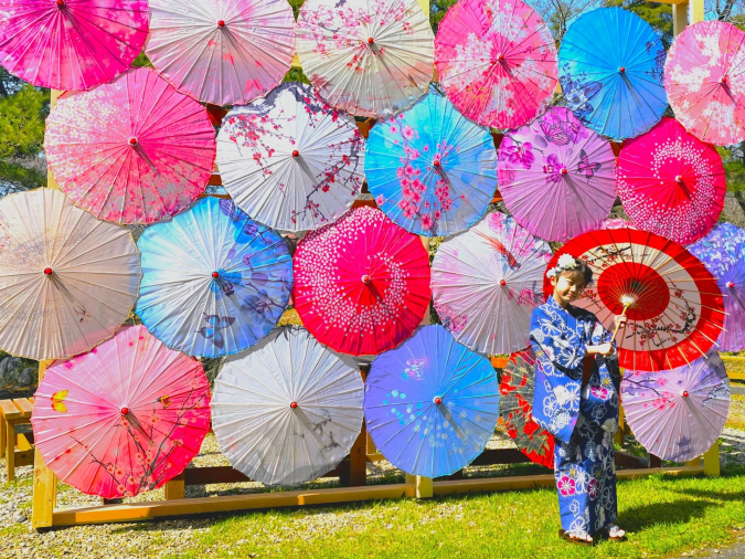 関ヶ原ウォーランド内に約400本の和傘を演出展示しており、一部は風鈴まつりと合わせた展示をしています。今年は屋内展示を2か所に増設。屋内展示では日中もライトアップしています。