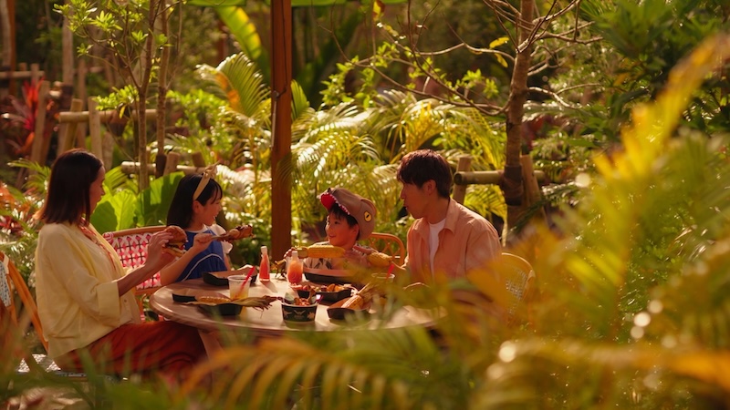 パーク中心部に位置する、ワイルドで活気に満ちた屋外レストラン。ヤシの木々や色鮮やかな熱帯植物に囲まれた、南国リゾート感あふれる空間が広がります。沖縄県産の食材が豪快にグリルされるライブキッチンでは、見た目も味もワイルドなメニューが楽しめます。