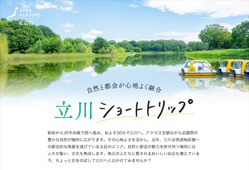 自然と都会が心地よく融合 東京都立川ショートトリップ