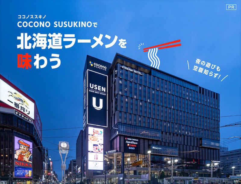 北海道屈指の繁華街・すすきのにある「COCONO SUSUKINO(ココノススキノ)」には、地下2階から地上18階まで、カフェやレストラン、地元食材が買えるスーパー、ファッション雑貨店、シネマ、ホテルまでが集結。今回は昨年オープンした話題のラーメンフードホールを中心に、夜に食べたい北海道グルメをお届けします。