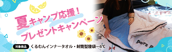 封筒型寝袋-6℃&くるむんタオルが当たる「夏キャンプ応援プレゼントキャンペーン」を実施中!