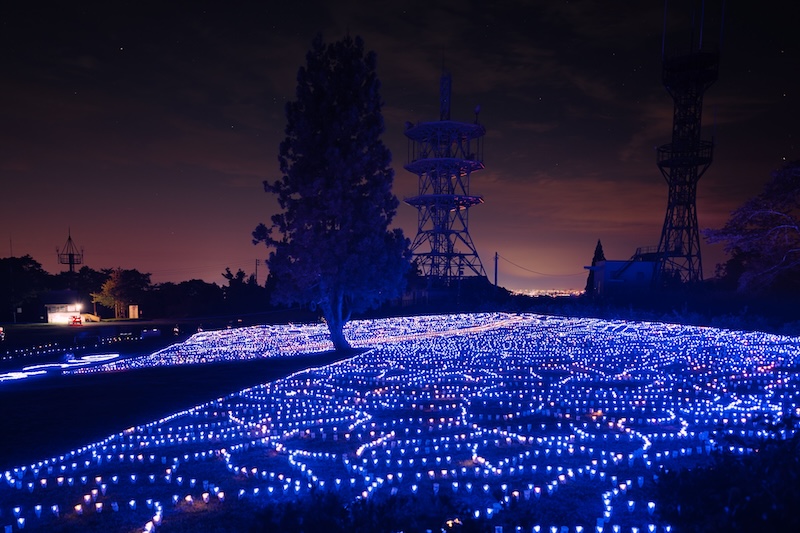 昨年度のオヂヤホタル は、小千谷市民に愛される自然豊かな山本山(やまもとやま)山頂で開催し、県内外から多くの方が訪れ、その名の通り「ほたる」のようにゆらめく約20,000個のペットボタル®が生み出す幻想的な空間をお楽しみいただきました。