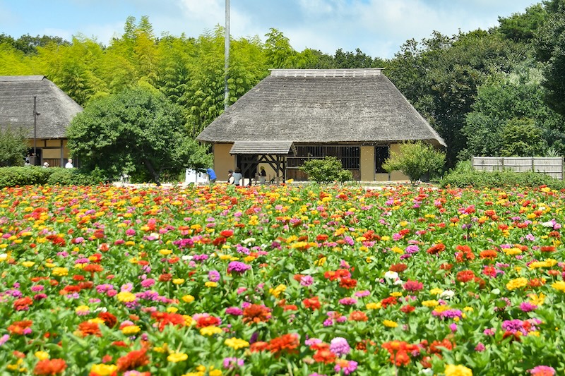 国営ひたち海浜公園の「みはらしの里」では、約17万本のジニアが見頃を迎えました。一面に広がる色とりどりの花々は夏空を華やかに彩り、訪れる方に沢山の元気を与えてくれそうです。さらに、ジニアの隣に位置する花畑では、ヒマワリがまもなく見頃を迎える見込みです。「みはらしの丘」のコキアも現在50~60cmほどまで成長し、鮮やかな緑色が丘一面に広がっています。