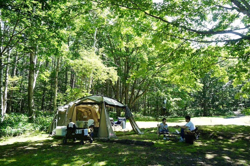上信越高原国立公園内、標高1,400mの高原に広がるキャンプ場。白樺やミズナラ、カラマツ林に囲まれ、山野草や高山植物を楽しめます。小川が流れ、真夏でも日中は28℃前後と涼しく、「高原の涼」を感じながら快適に過ごせます。