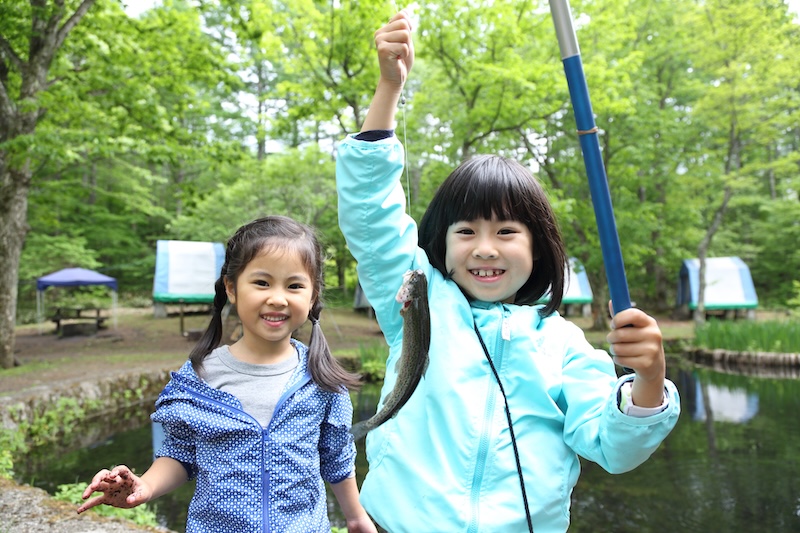 ・釣り池で川魚釣り(入場500円/魚1匹270円)※BBQ調理可