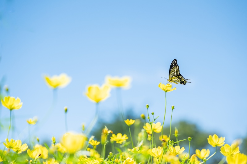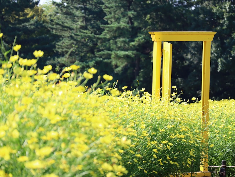 花畑の一部エリアではミックスのキバナコスモスもご覧いただけます。