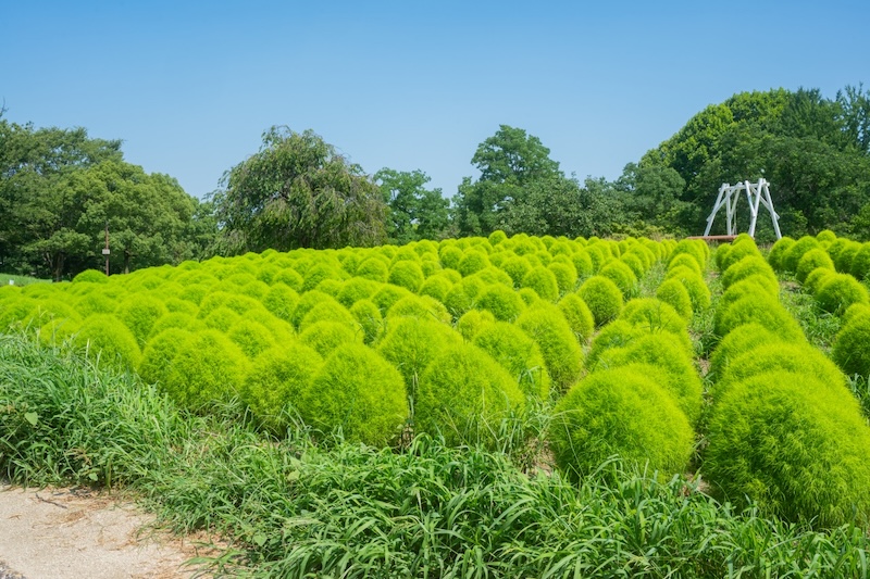 4つの花畑で、「キバナコスモス‘レモンブライト’」、「コスモス‘センセーション’」、「秋のブーケガーデン」、そして「コキア」を展開。今回初めてハーブの丘に登場するコキアは、イベント期間中に緑色~赤色に色づく様子をご覧いただけます。