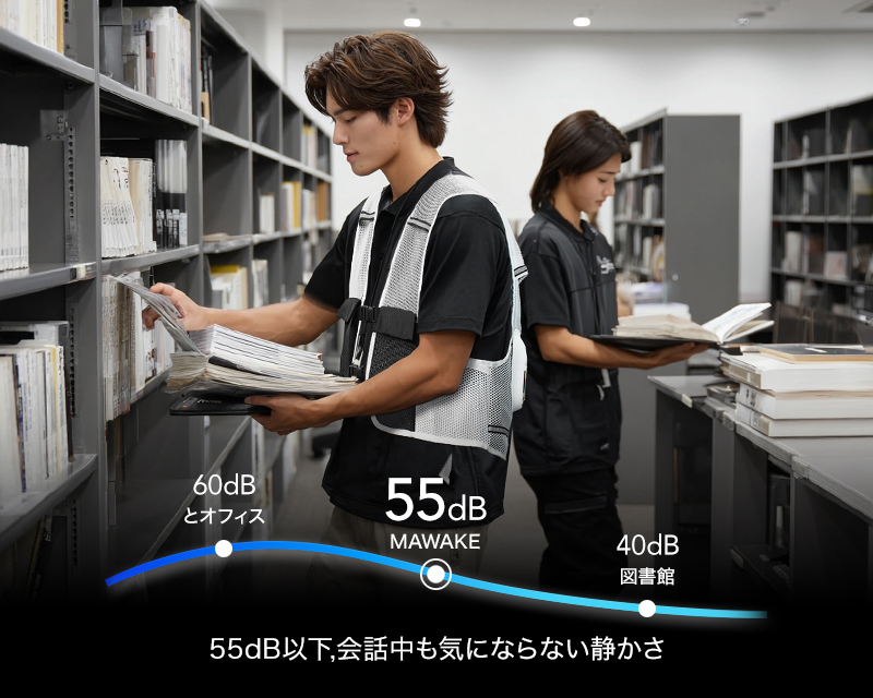 - 参考:図書館(約40dB)/オフィス(約60dB)