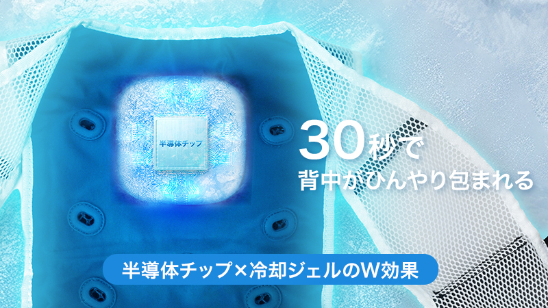 さらに、高伝導性の冷却ジェルが冷気を効率よく背中へ伝え、