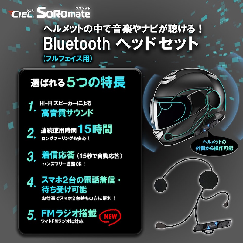 国内累計販売台数 約3万台の従来モデル(ソロメイト フルフェイス、ソロメイト ジェット)が進化を遂げて新登場です。2025 年 最新Bluetooth V5.3 チップセットを搭載し、通信速度アップ、よりクリアな音声をお楽しみ頂けるようになりました。なんと、2モデルとも従来モデルと比較して約10%プライスダウンで登場します。