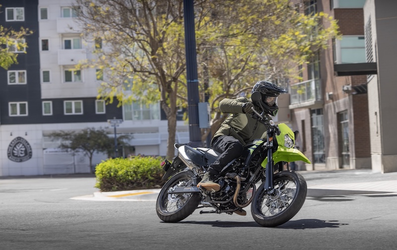 ワイルドな雰囲気とオフロードテイストを街で堪能する、KLX230SM。スーパーモトならではの楽しさに満ちています。