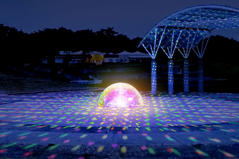 今年は、より幻想的で楽しめる新演出が登場します。西池の水のステージには「光のドーム」が登場し、光と音が織りなす幻想的な空間を創出します。さらに、みはらしの丘では光で文字やイラストを描く「レーザー演出」をご覧いただけます。 また、コキアのマスコットキャラクター「ふわりんともこ太のバルーン」が、来場者をお出迎え。昨年よりもボリュームアップした光の演出を、お楽しみください。