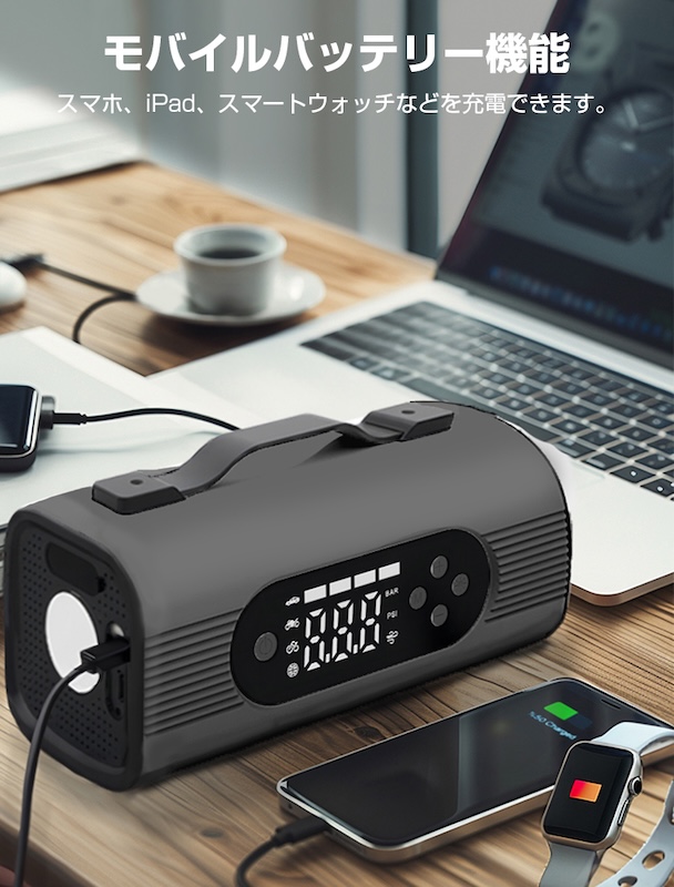 「エンジンがかからない」「タイヤの空気が足りない」「スマホの電池が切れた」――そんなトラブルをこの一台で解決。
