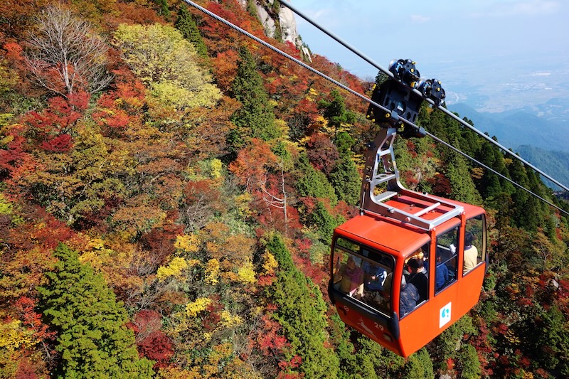 御在所岳は菰野町と滋賀県東近江市の境にそびえ立っており、鈴鹿セブンマウンテンの中で最も人気のある山です。標高1212mの御在所岳は、山上までロープウェイで登ることができるので、空中から山の絶景を見下ろすことができます。御在所岳の紅葉は、山上付近から始まり、中腹、山麓にかけてゆっくりと染まるのが特徴。そのため訪れるたびに違った表情の紅葉が楽しめます。
