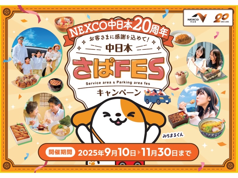 中日本高速道路株式会社と中日本エクシス株式会社は、2025年に創立から20周年という節目を迎えるにあたり、お客さまへ感謝の気持ちを込めて、「お客さまに感謝を込めて!中日本さぱFESキャンペーン」を開催します。