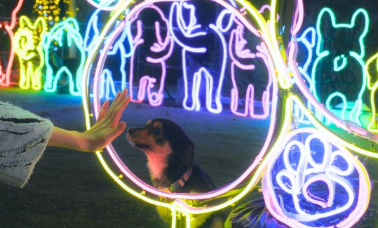 また、体験型コンテンツとして、犬型イルミや光る足跡オブジェが設置され、愛犬と一緒に楽しめる特別空間のわんわんパーク(ペット同伴可)のほか、LED演出と日本伝統芸能を融合した猿まわしのモンキーショーが上演されるなど、多くの演出やコンテンツをご用意しております。