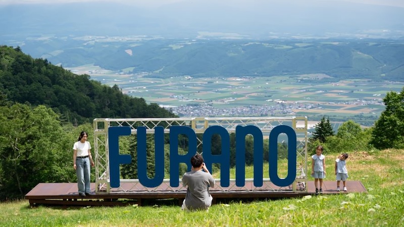 十勝岳連峰を背景に「FURANO」の文字が映えるモニュメントを設置しています。旅の思い出になる写真を撮影することができます。