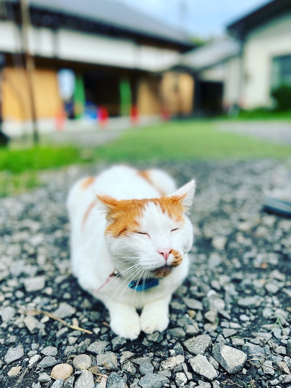 外気浴中には、和心村で自由に暮らす15匹の保護猫たちとの偶然の出会いも楽しみの一つです。