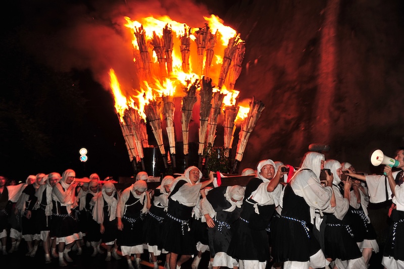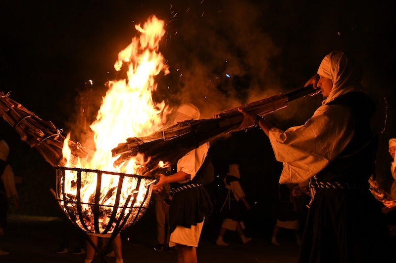 漆黒の夜空に浮き立つ松明の紅。渓谷にこだまする僧兵太鼓。