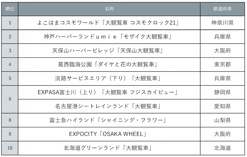 『じゃらん』絶景が満喫できる観覧車ランキング
