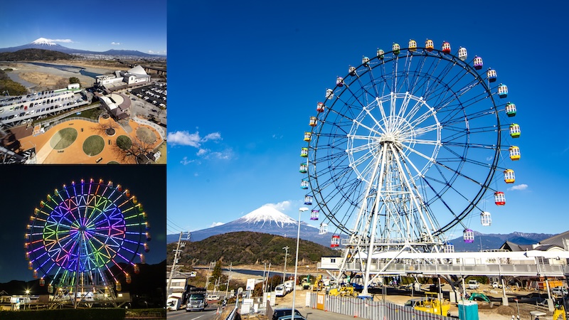 高さ60mの「大観覧車フジスカイビュー」からは、富士山や駿河湾、富士市街地を一望する雄大な景色が楽しめます。全36台のゴンドラのうち8台は床も座席も透明なシースルー仕様です。一周約12分で飲食も可能。ゆっくり楽しみたいなら2周券がおすすめです。これからの季節は、富士山の姿がよりくっきりと見え、夕暮れから夜にかけてのイルミネーションもファンタスティックです。