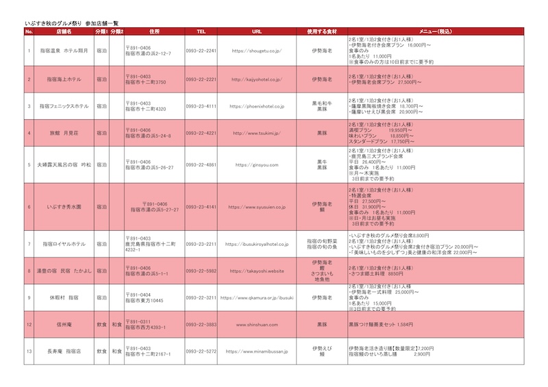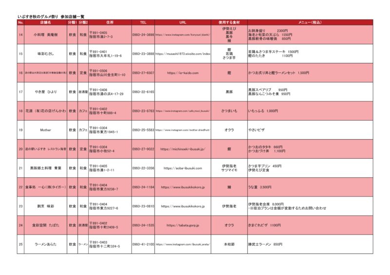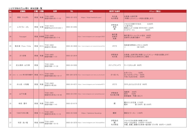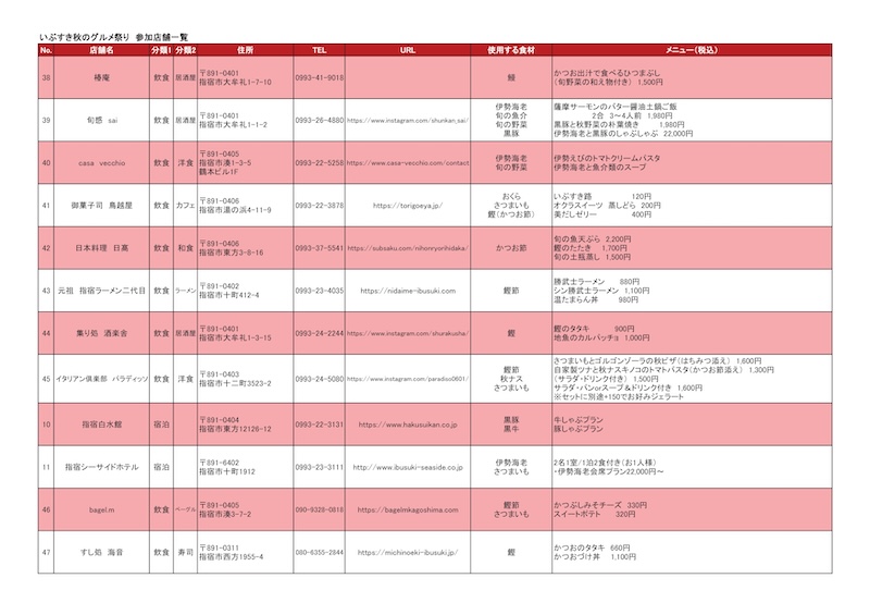 いぶすき秋のグルメ祭り 参加店舗一覧