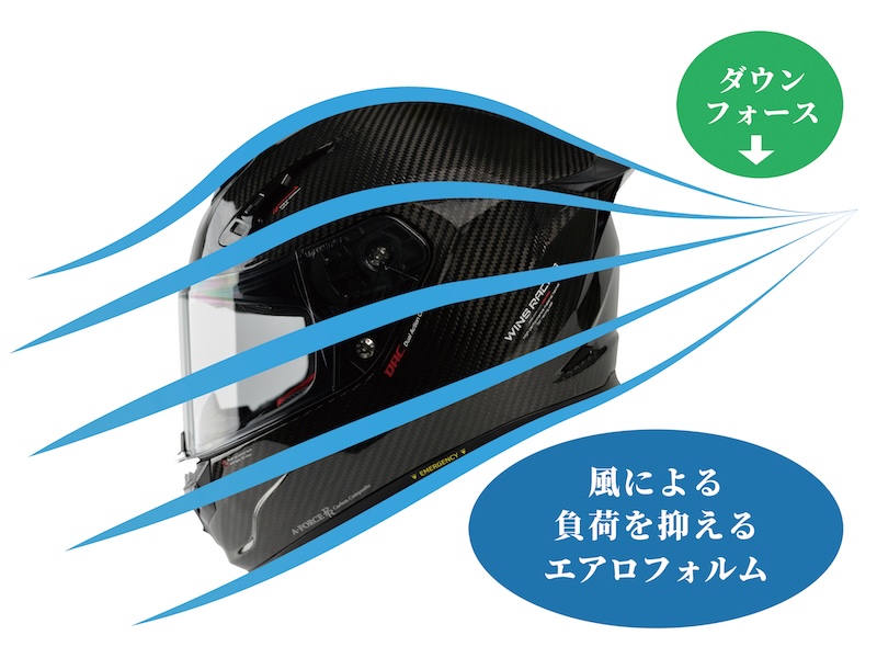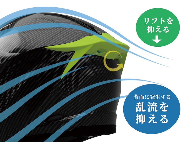 ヘルメットのリフトや背面に発生する乱流を抑えます。