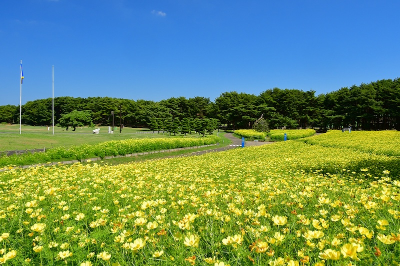 国営ひたち海浜公園の「大草原フラワーガーデン」では、鮮やかな黄色い花を咲かせるキバナコスモス“レモンブライト”が、8月29日から見頃を迎えています。澄んだ青空に映える鮮やかなレモンイエローの花々が一面に広がる様子は、来園者を夏から秋へと誘います。“レモンブライト”の見頃は、9月下旬頃まで続く見込みです。