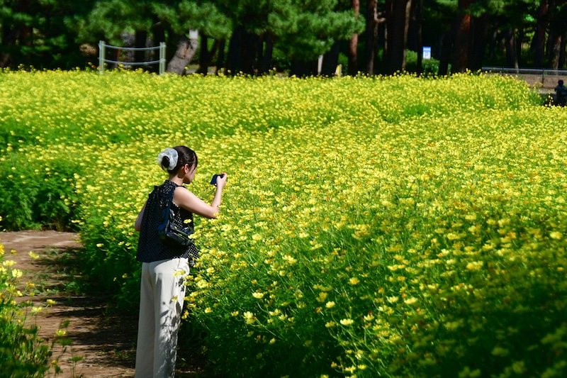 キバナコスモス “レモンブライト” が見頃を迎えています(国営ひたち海浜公園)