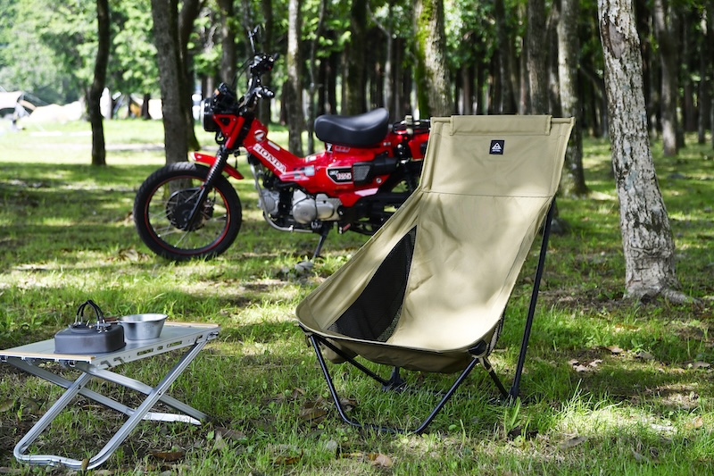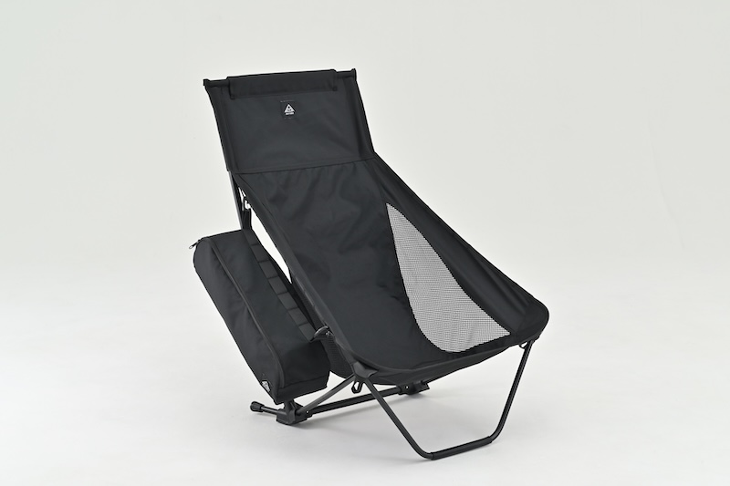 このたび登場するローチェアは、背もたれが高く、頭までしっかり支えてくれる設計で、全身をあずけてリラックス。座面はロータイプなので、あぐらをかいたり足を伸ばしたり、自由な姿勢で過ごせます。背もたれの角度は深めで星空観賞やリラックスタイムに最適。ハイバックローチェアは、軽く腕を置いたときの安定感、チェアのくつろぎ度をぐっと引き上げてくれるでしょう。長時間座っていても快適に過ごせます。
