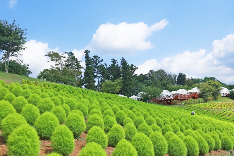 現在、マザー牧場では新緑期の爽やかな緑色が綺麗な「コキア」や一面を鮮やかなピンク色に染める「桃色吐息」の花畑などが見頃を迎えています!