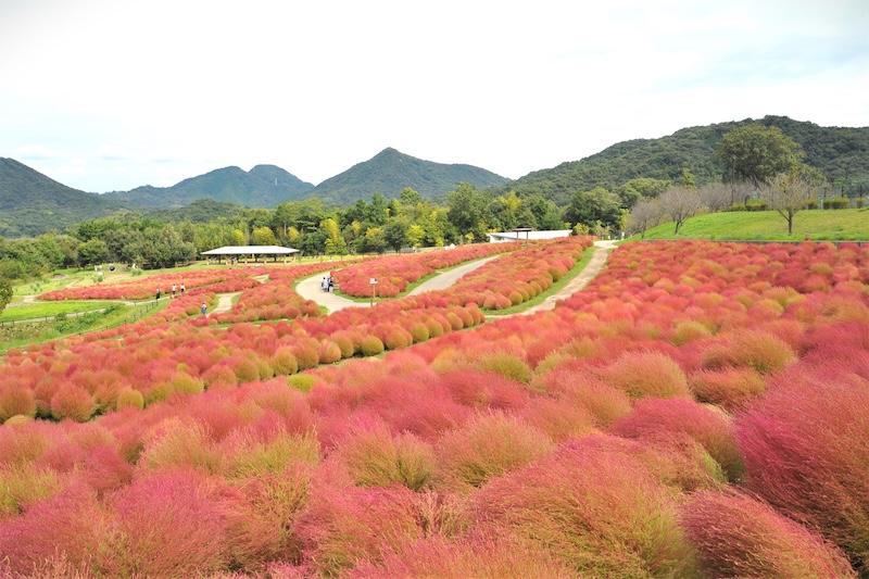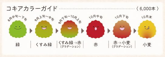 「秋!色どりフェスタ」の期間中、花巡りの丘にて6,000本のコキアがお楽しみいただけます。