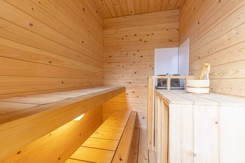 ドッグヴィラは全棟に約100㎡の広々としたプライベートドッグランを完備。さらに専用の食事スペースを備えているため、食事時間も愛犬と一緒に楽しむことができます。また、全4棟のドッグヴィラのうち2棟にはプライベートサウナを完備し、滞在中は何度でも自由に利用できる本格サウナで、身体の芯から温まるリラクゼーションを体験できます。