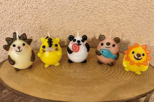 パンダ、ハリネズミ、ライオン、トラ、クマの中から好きな動物を選んでキャンドルを手作り。