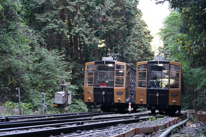 その後、全長2,025mで日本一の長さを誇る「坂本ケーブルカー」に乗車し、普段は立ち入ることのできないバックヤードを特別に見学できます。