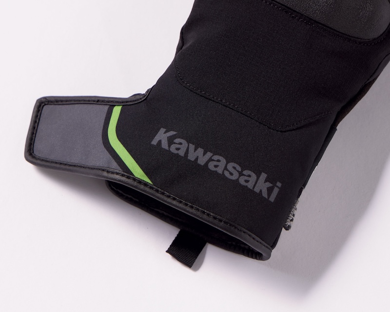 手首部分には「Kawasaki」ロゴ、中綿入りで保温性に優れています カラー:ブラック
