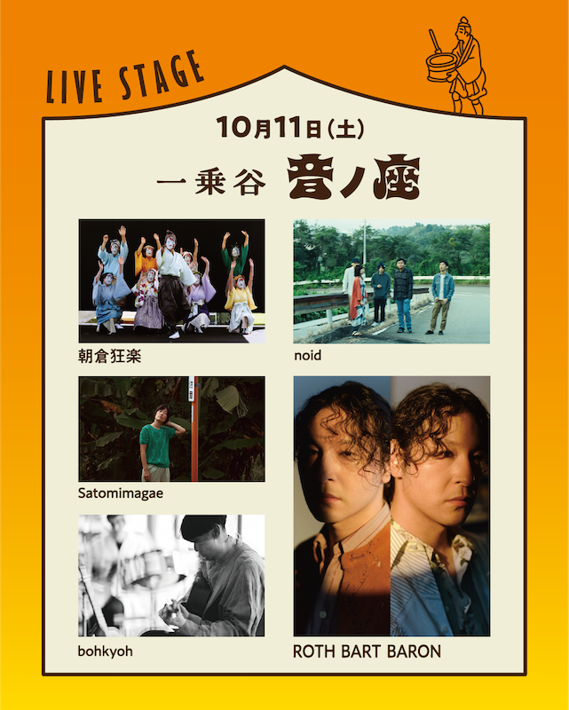 秋の里山の風景にそっと寄り添う、音のひととき。 歴史ある遺跡のたたずまいに溶け込むような、アンビエントな響きが一日中ステージを彩ります。自然の息づかいとともに、五感で味わう静かで豊かな音楽の時間が流れていきます。